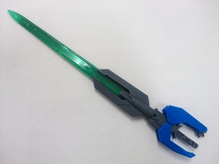 The weapon is mostly blue, with white metallic components and neon green blades, identical to the colour scheme of Harmony and Discord. Attached to the sides and surface of the sword/shield are 3 new sword bits that double as daggers, with the white handles on the side and bottom of the blade acting as secondary grips for easier wielding. Due to its weight, Setsuna cannot wield or holster this weapon for long, opting to leave it upright in the ground, or alternatively calling it in via rocket locker.